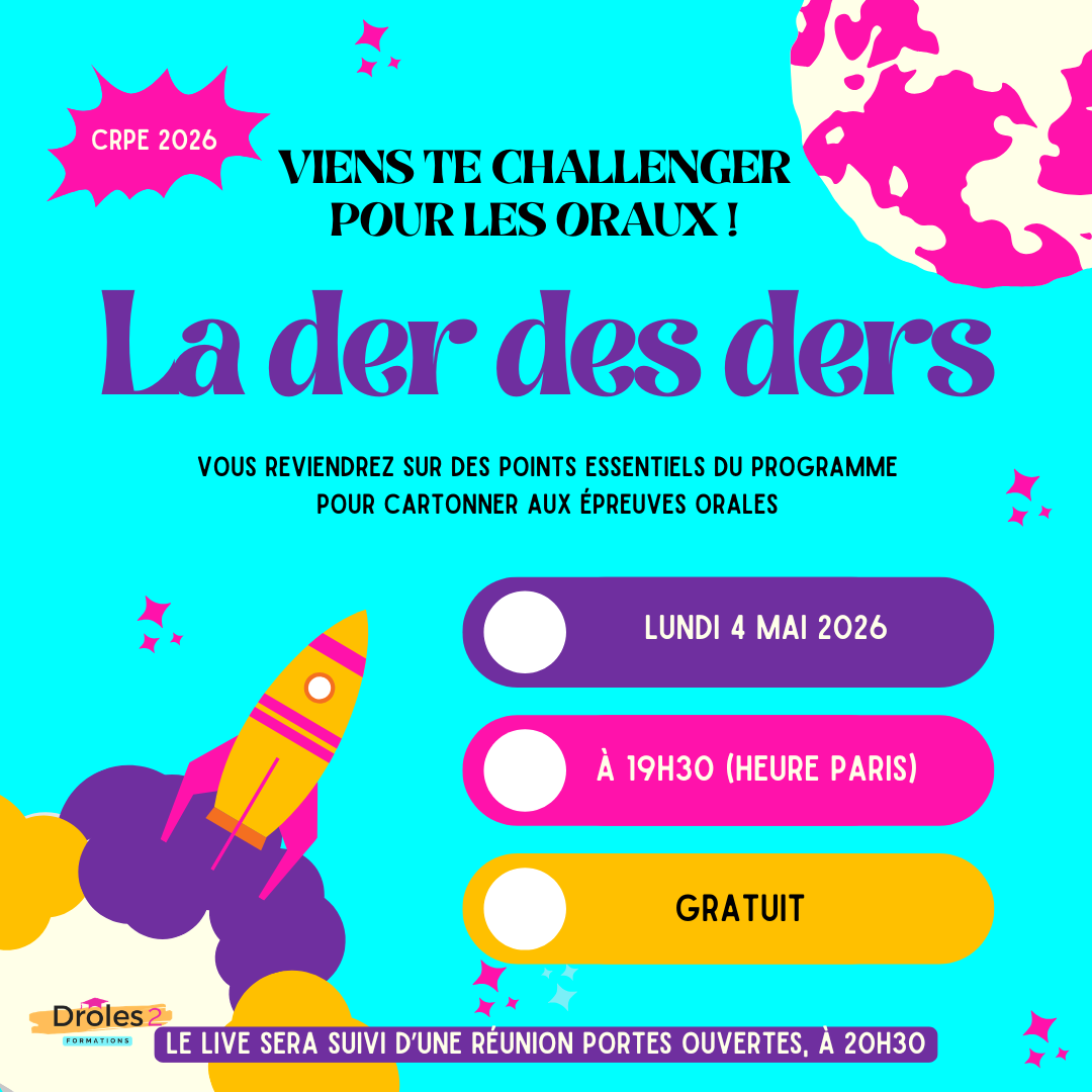 Ce live gratuit est l’occasion de se préparer pour le concours, de se challenger et de profiter de conseils pratiques dans une ambiance conviviale et motivante.