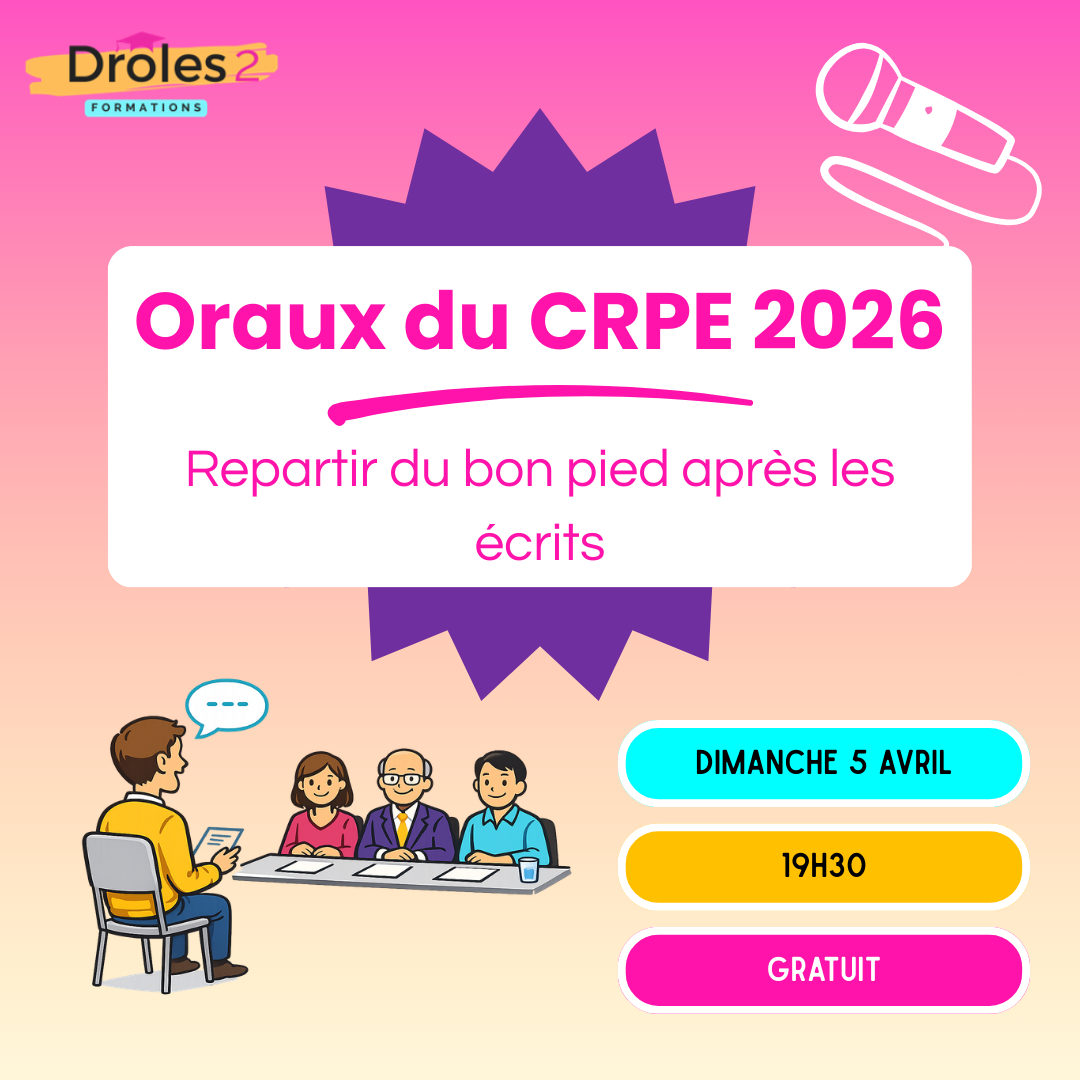 Notre événement « Oraux du CRPE 2026 : repartir du bon pied après les écrits » a été conçu pour vous aider à retrouver votre motivation, reprendre confiance et repartir sereinement dans vos révisions.