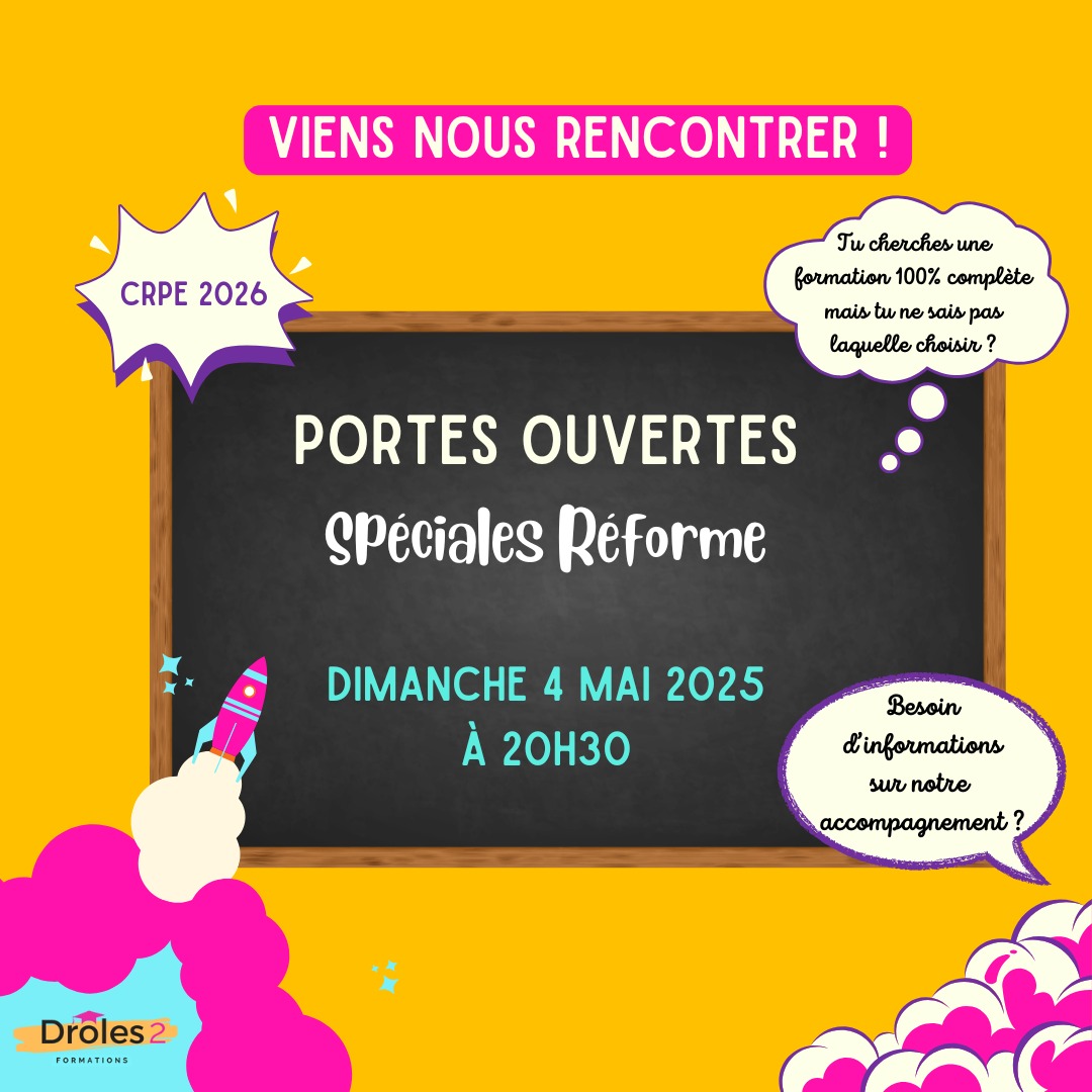 Vous vous dites qu’il est trop tôt pour démarrer vos révisions pour le CRPE 2026 ? Vous ne savez pas par où commencer face à la réforme à venir ? Vous rêvez de devenir enseignant l’année prochaine mais choisir la bonne formation dans ce contexte de changement vous semble être un véritable casse-tête ? Venez nous rencontrer pour clarifier tout ça !